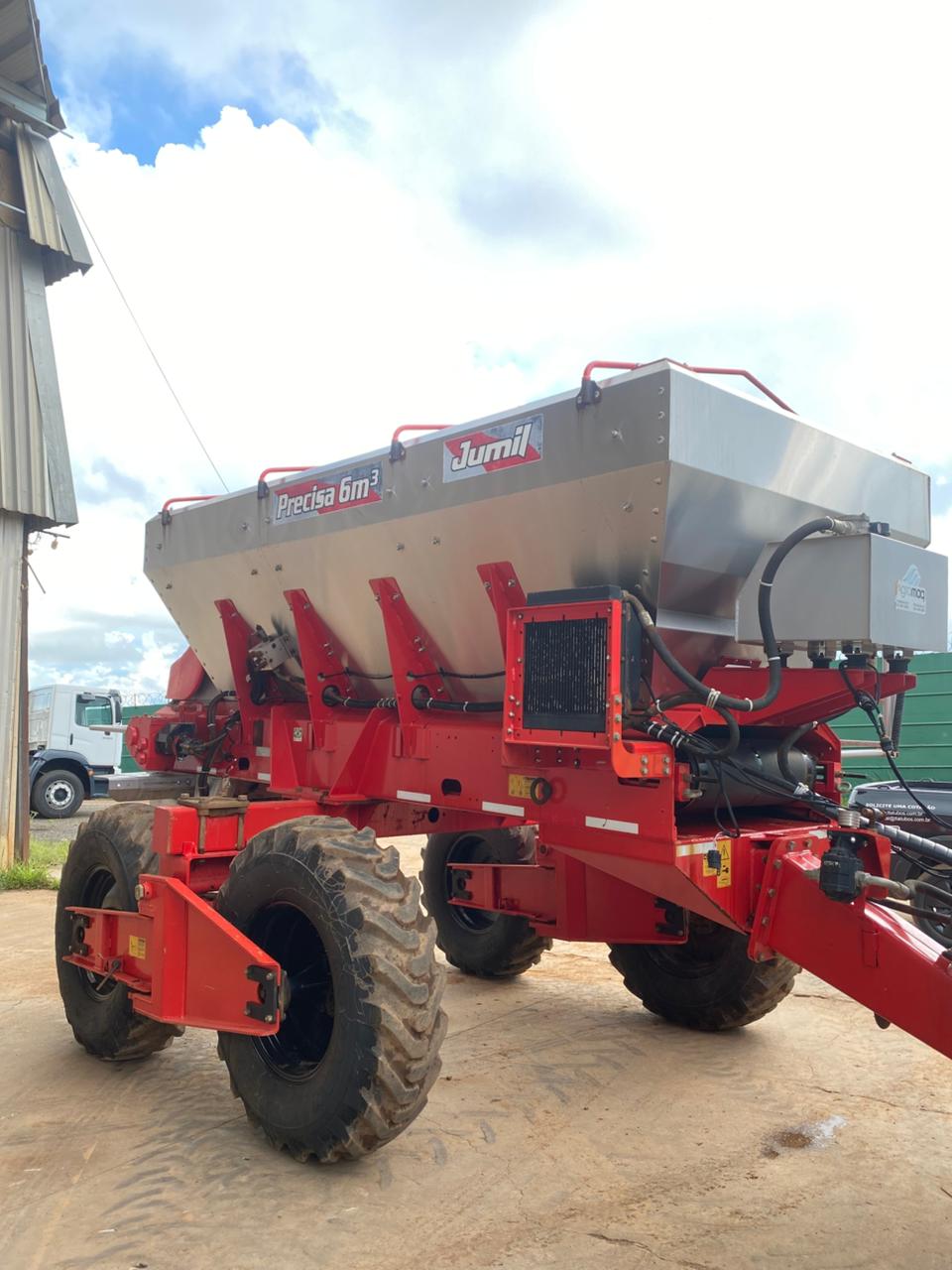 Distribuidora de calcário e fertilizantes Jumil Precisa 6m³, ano 2022, equipada com sistema hidráulico e alta tecnologia de distribuição para aplicação uniforme e eficiente. Ideal para produtores que buscam maior produtividade, economia de insumos e excelente rendimento operacional.