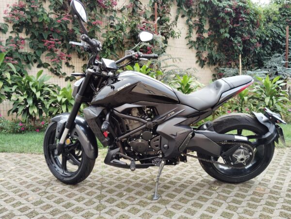 Equipada com motor 350cc, a Zontes V350 entrega excelente desempenho tanto na cidade quanto na estrada, aliando conforto, tecnologia e segurança. Seu design moderno e agressivo, na elegante cor preta, destaca-se entre as motocicletas da categoria.