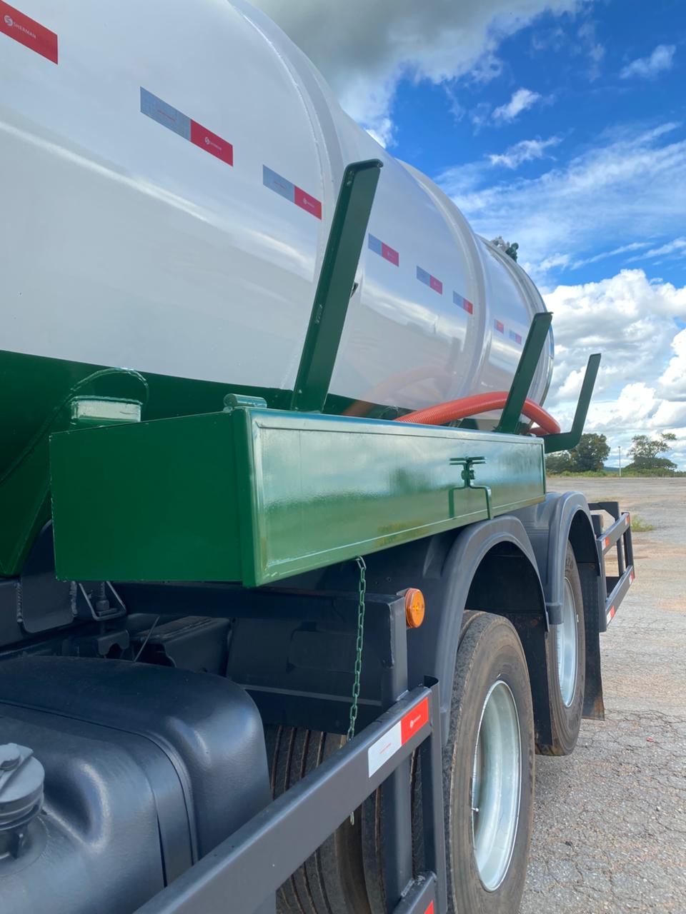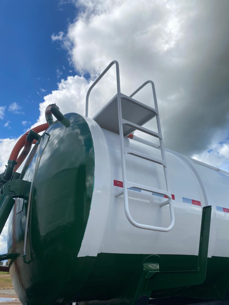 Tanque novo, fabricado em aço estrutural A36, com reforço estrutural e sistema hidráulico de alto desempenho.
